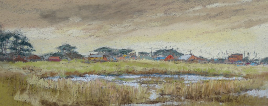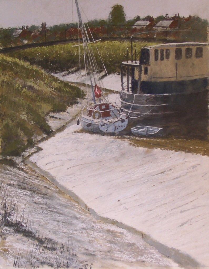 Low Tide, Barton £295 Pastel Struck by the sunlight shining on the wet mud.