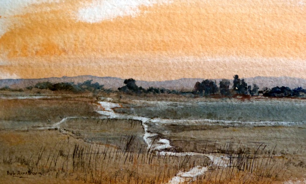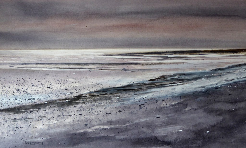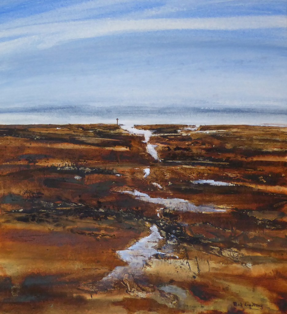 Saltmarsh £240 Mixed Media An endangered habitat, this particular one seen at the southern end of the Wash, one of the most important places for over wintering wading birds in Europe.